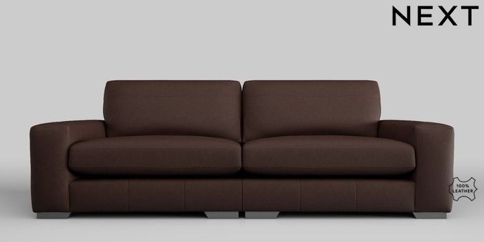 7.0.3 Buy Houghton Leather Deep Sit 4 Seater Sofa Rustic Leather Dark Brown Large Square Angle - Gunmetal from the Next UK online shop Click here to use our accessible website
