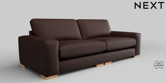 6.12.1 Buy Houghton Leather Deep Sit 4 Seater Sofa Rustic Leather Dark Brown Large Square Angle - Light from the Next UK online shop Click here to use our accessible website