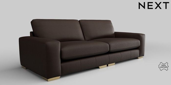 6.12.1 Buy Houghton Leather Deep Sit 4 Seater Sofa Turin Leather Dark Brown Large Square Angle - Brushed Brass from the Next UK online shop Click here to use our accessible website