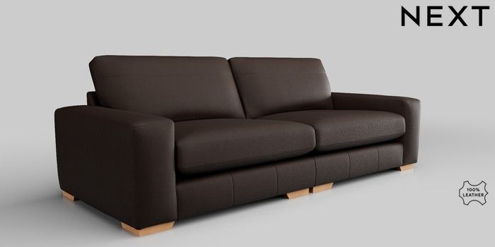 6.12.1 Buy Houghton Leather Deep Sit 4 Seater Sofa Turin Leather Dark Brown Large Square Angle - Light from the Next UK online shop Click here to use our accessible website