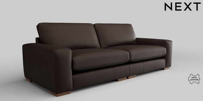6.12.1 Buy Houghton Leather Deep Sit 4 Seater Sofa Turin Leather Dark Brown Large Square Angle - Mid from the Next UK online shop Click here to use our accessible website