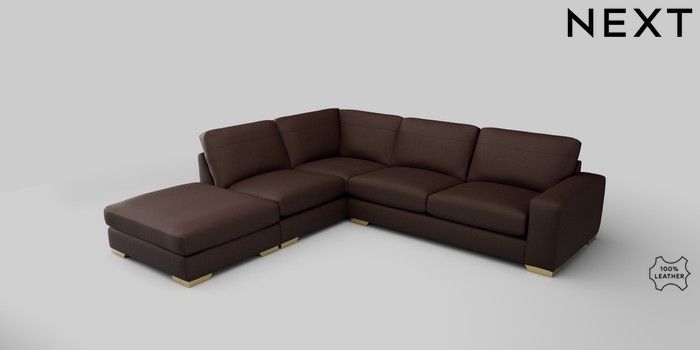 6.12.1 Buy Houghton Leather Deep Sit Large Open End Corner Chaise - Left Hand Rustic Leather Dark Brown Large Square Angle - Brushed Brass from the Next UK online shop Click here to use our accessible website