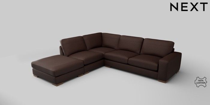 6.12.1 Buy Houghton Leather Deep Sit Large Open End Corner Chaise - Left Hand Rustic Leather Dark Brown Large Square Angle - Mid from the Next UK online shop Click here to use our accessible website
