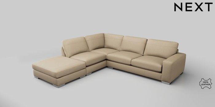 6.12.1 Buy Houghton Leather Deep Sit Large Open End Corner Chaise - Left Hand Turin Leather Light Natural Large Square Angle - Chrome Metal from the Next UK online shop Click here to use our accessible website