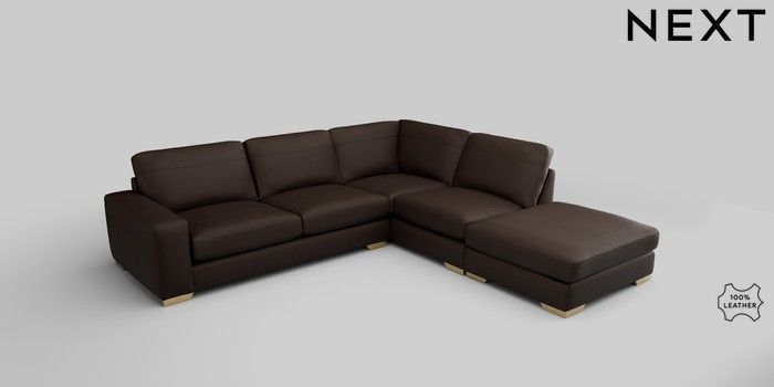 6.12.1 Buy Houghton Leather Deep Sit Large Open End Corner Chaise - Right Hand Turin Leather Dark Brown Large Square Angle - Brushed Brass from the Next UK online shop Click here to use our accessible website