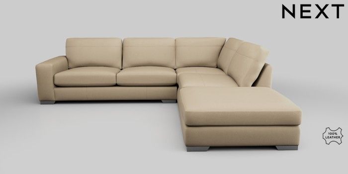 7.0.3 Buy Houghton Leather Deep Sit Large Open End Corner Chaise - Right Hand Turin Leather Light Natural Large Square Angle - Gunmetal from the Next UK online shop Click here to use our accessible website