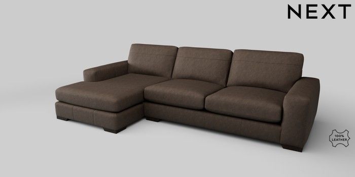 6.12.1 Buy Houghton Leather Deep Sit Large Sofa Chaise - Left Hand Antiqued Leather Dark Brown Large Square Angle - Dark from the Next UK online shop Click here to use our accessible website