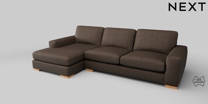 6.12.1 Buy Houghton Leather Deep Sit Large Sofa Chaise - Left Hand Antiqued Leather Dark Brown Large Square Angle - Light from the Next UK online shop Click here to use our accessible website