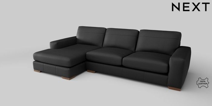 6.12.1 Buy Houghton Leather Deep Sit Large Sofa Chaise - Left Hand Columbia Black Large Square Angle - Mid from the Next UK online shop Click here to use our accessible website