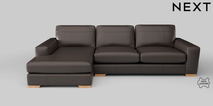 7.2.5 Buy Houghton Leather Deep Sit Large Sofa Chaise - Left Hand Columbia Dark Brown Large Square Angle - Light from the Next UK online shop Click here to use our accessible website