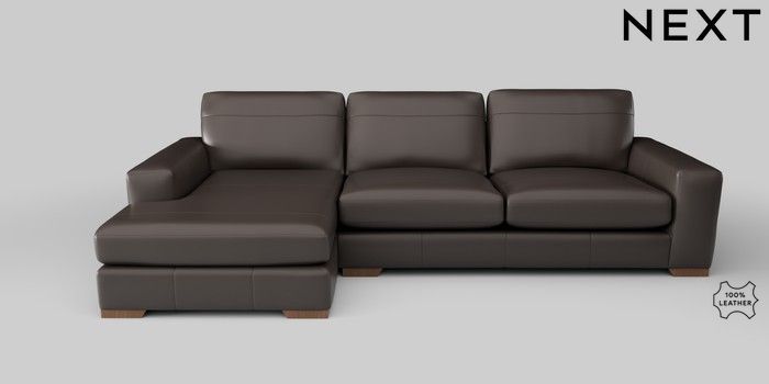 7.2.5 Buy Houghton Leather Deep Sit Large Sofa Chaise - Left Hand Columbia Dark Brown Large Square Angle - Mid from the Next UK online shop Click here to use our accessible website