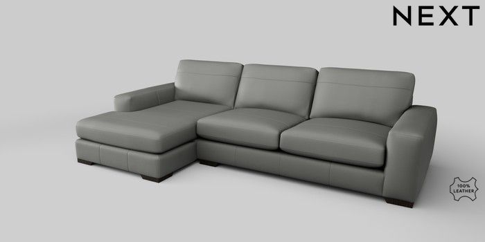 6.12.1 Buy Houghton Leather Deep Sit Large Sofa Chaise - Left Hand Columbia French Grey Large Square Angle - Dark from the Next UK online shop Click here to use our accessible website