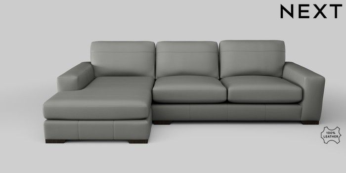 7.2.5 Buy Houghton Leather Deep Sit Large Sofa Chaise - Left Hand Columbia French Grey Large Square Angle - Dark from the Next UK online shop Click here to use our accessible website