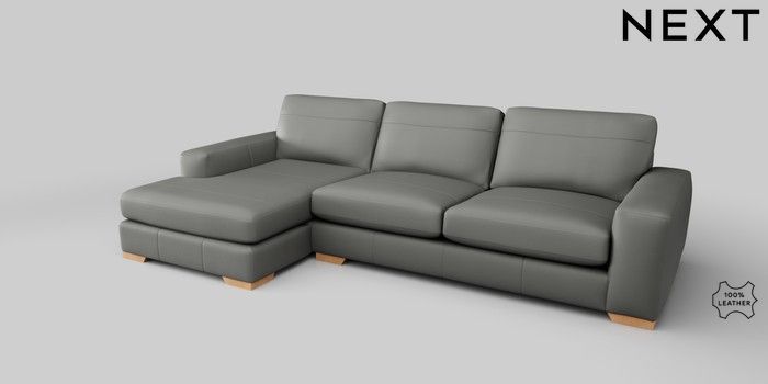 6.12.1 Buy Houghton Leather Deep Sit Large Sofa Chaise - Left Hand Columbia French Grey Large Square Angle - Light from the Next UK online shop Click here to use our accessible website