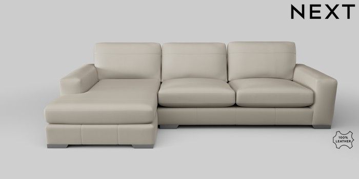 6.12.1 Buy Houghton Leather Deep Sit Large Sofa Chaise - Left Hand Columbia Silver Grey Large Square Angle - Gunmetal from the Next UK online shop Click here to use our accessible website
