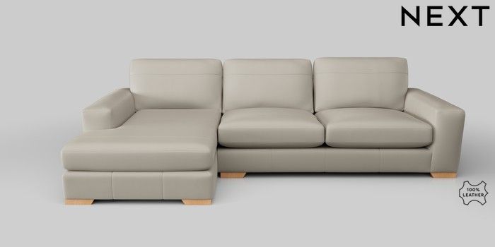 7.2.5 Buy Houghton Leather Deep Sit Large Sofa Chaise - Left Hand Columbia Silver Grey Large Square Angle - Light from the Next UK online shop Click here to use our accessible website