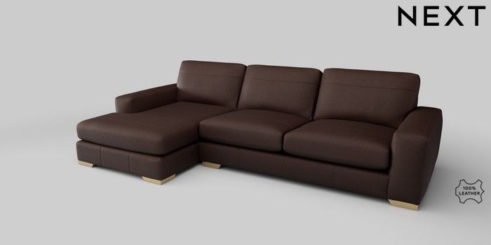 6.12.1 Buy Houghton Leather Deep Sit Large Sofa Chaise - Left Hand Rustic Leather Dark Brown Large Square Angle - Brushed Brass from the Next UK online shop Click here to use our accessible website