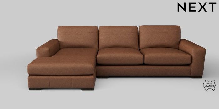 7.2.5 Buy Houghton Leather Deep Sit Large Sofa Chaise - Left Hand Rustic Leather Light Brown Large Square Angle - Dark from the Next UK online shop Click here to use our accessible website