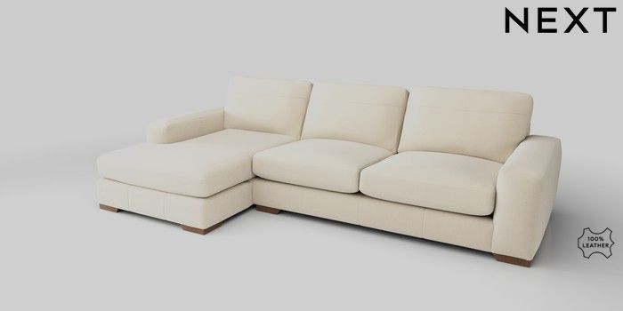 6.12.1 Buy Houghton Leather Deep Sit Large Sofa Chaise - Left Hand Turin Leather Cream Large Square Angle - Mid from the Next UK online shop Click here to use our accessible website