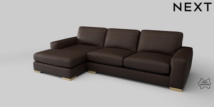 6.12.1 Buy Houghton Leather Deep Sit Large Sofa Chaise - Left Hand Turin Leather Dark Brown Large Square Angle - Brushed Brass from the Next UK online shop Click here to use our accessible website