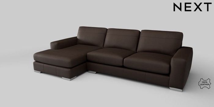 6.12.1 Buy Houghton Leather Deep Sit Large Sofa Chaise - Left Hand Turin Leather Dark Brown Large Square Angle - Chrome Metal from the Next UK online shop Click here to use our accessible website