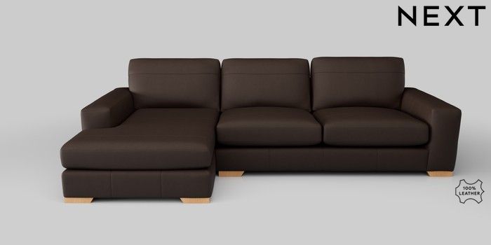 7.0.3 Buy Houghton Leather Deep Sit Large Sofa Chaise - Left Hand Turin Leather Dark Brown Large Square Angle - Light from the Next UK online shop Click here to use our accessible website