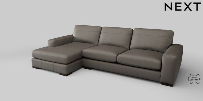 6.12.1 Buy Houghton Leather Deep Sit Large Sofa Chaise - Left Hand Turin Leather French Grey Large Square Angle - Dark from the Next UK online shop Click here to use our accessible website