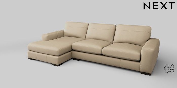 6.12.1 Buy Houghton Leather Deep Sit Large Sofa Chaise - Left Hand Turin Leather Light Natural Large Square Angle - Dark from the Next UK online shop Click here to use our accessible website
