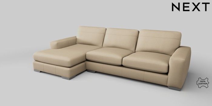 6.12.1 Buy Houghton Leather Deep Sit Large Sofa Chaise - Left Hand Turin Leather Light Natural Large Square Angle - Gunmetal from the Next UK online shop Click here to use our accessible website