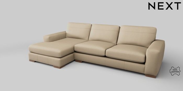 6.12.1 Buy Houghton Leather Deep Sit Large Sofa Chaise - Left Hand Turin Leather Light Natural Large Square Angle - Mid from the Next UK online shop Click here to use our accessible website