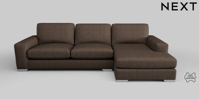 6.12.1 Buy Houghton Leather Deep Sit Large Sofa Chaise - Right Hand Antiqued Leather Dark Brown Large Square Angle - Chrome Metal from the Next UK online shop Click here to use our accessible website