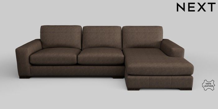 7.2.5 Buy Houghton Leather Deep Sit Large Sofa Chaise - Right Hand Antiqued Leather Dark Brown Large Square Angle - Dark from the Next UK online shop Click here to use our accessible website
