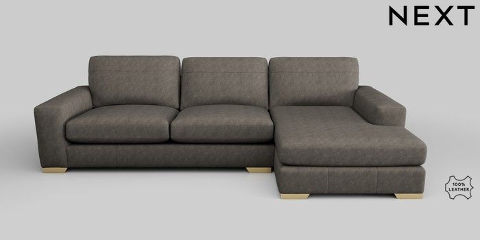6.12.1 Buy Houghton Leather Deep Sit Large Sofa Chaise - Right Hand Antiqued Leather Grey Large Square Angle - Brushed Brass from the Next UK online shop Click here to use our accessible website