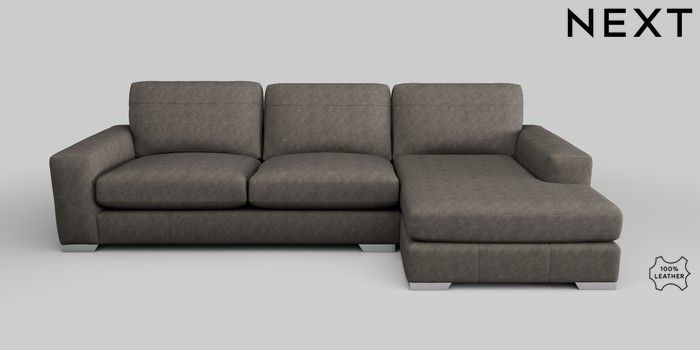 6.12.1 Buy Houghton Leather Deep Sit Large Sofa Chaise - Right Hand Antiqued Leather Grey Large Square Angle - Chrome Metal from the Next UK online shop Click here to use our accessible website