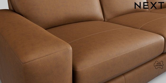 7.2.5 Buy Houghton Leather Deep Sit Large Sofa Chaise - Right Hand Antiqued Leather Light Tan Brown Large Square Angle - Dark from the Next UK online shop Click here to use our accessible website