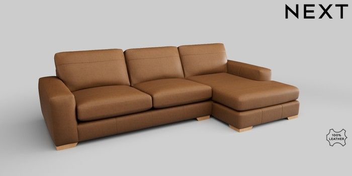 6.12.1 Buy Houghton Leather Deep Sit Large Sofa Chaise - Right Hand Antiqued Leather Light Tan Brown Large Square Angle - Light from the Next UK online shop Click here to use our accessible website