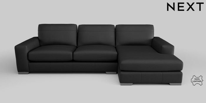 6.12.1 Buy Houghton Leather Deep Sit Large Sofa Chaise - Right Hand Columbia Black Large Square Angle - Gunmetal from the Next UK online shop Click here to use our accessible website