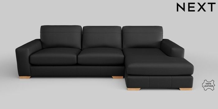 7.2.5 Buy Houghton Leather Deep Sit Large Sofa Chaise - Right Hand Columbia Black Large Square Angle - Light from the Next UK online shop Click here to use our accessible website