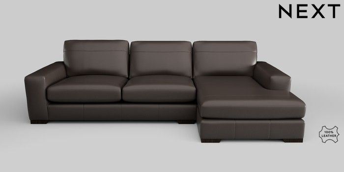 7.2.5 Buy Houghton Leather Deep Sit Large Sofa Chaise - Right Hand Columbia Dark Brown Large Square Angle - Dark from the Next UK online shop Click here to use our accessible website