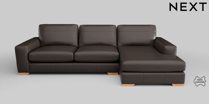 7.2.5 Buy Houghton Leather Deep Sit Large Sofa Chaise - Right Hand Columbia Dark Brown Large Square Angle - Light from the Next UK online shop Click here to use our accessible website