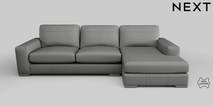6.12.1 Buy Houghton Leather Deep Sit Large Sofa Chaise - Right Hand Columbia French Grey Large Square Angle - Gunmetal from the Next UK online shop Click here to use our accessible website