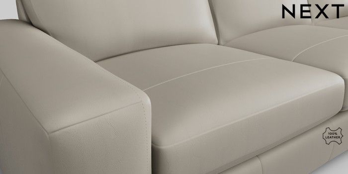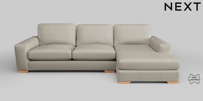 7.2.5 Buy Houghton Leather Deep Sit Large Sofa Chaise - Right Hand Columbia Silver Grey Large Square Angle - Light from the Next UK online shop Click here to use our accessible website