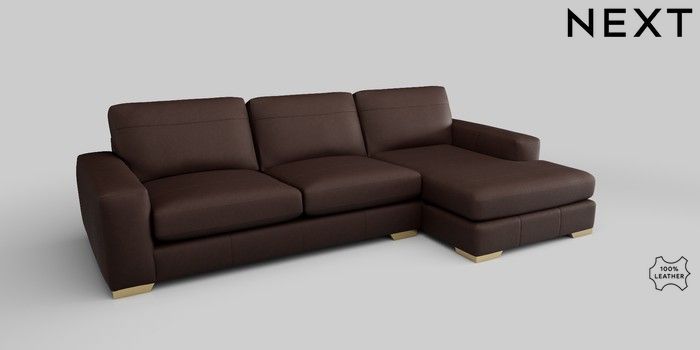6.12.1 Buy Houghton Leather Deep Sit Large Sofa Chaise - Right Hand Rustic Leather Dark Brown Large Square Angle - Brushed Brass from the Next UK online shop Click here to use our accessible website