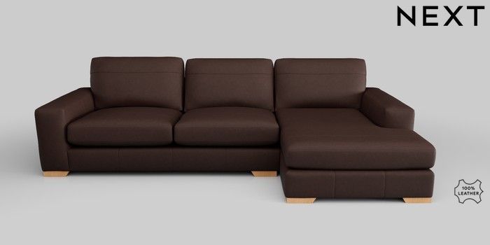 7.0.3 Buy Houghton Leather Deep Sit Large Sofa Chaise - Right Hand Rustic Leather Dark Brown Large Square Angle - Light from the Next UK online shop Click here to use our accessible website