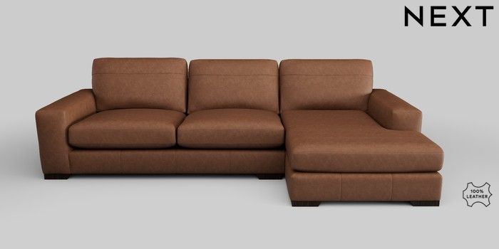 7.2.5 Buy Houghton Leather Deep Sit Large Sofa Chaise - Right Hand Rustic Leather Light Brown Large Square Angle - Dark from the Next UK online shop Click here to use our accessible website