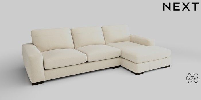 6.12.1 Buy Houghton Leather Deep Sit Large Sofa Chaise - Right Hand Turin Leather Cream Large Square Angle - Dark from the Next UK online shop Click here to use our accessible website