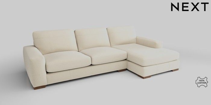 6.12.1 Buy Houghton Leather Deep Sit Large Sofa Chaise - Right Hand Turin Leather Cream Large Square Angle - Mid from the Next UK online shop Click here to use our accessible website