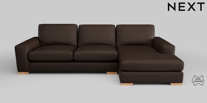 7.0.3 Buy Houghton Leather Deep Sit Large Sofa Chaise - Right Hand Turin Leather Dark Brown Large Square Angle - Light from the Next UK online shop Click here to use our accessible website