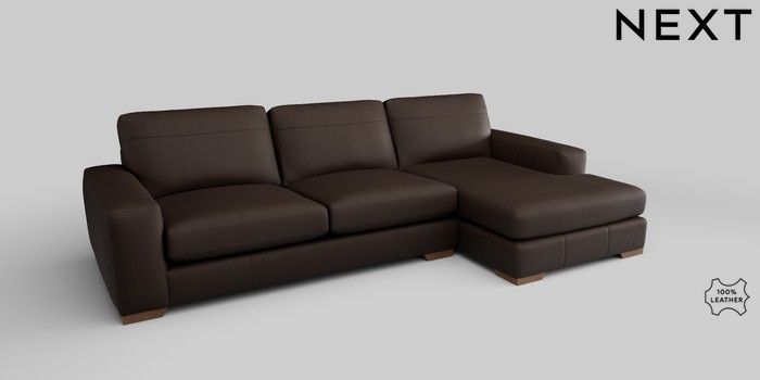 6.12.1 Buy Houghton Leather Deep Sit Large Sofa Chaise - Right Hand Turin Leather Dark Brown Large Square Angle - Mid from the Next UK online shop Click here to use our accessible website