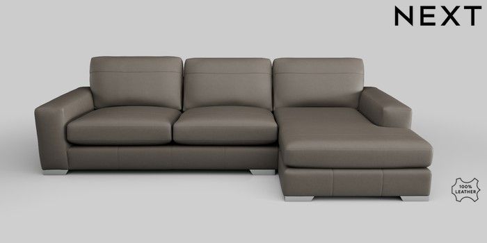 6.12.1 Buy Houghton Leather Deep Sit Large Sofa Chaise - Right Hand Turin Leather French Grey Large Square Angle - Chrome Metal from the Next UK online shop Click here to use our accessible website